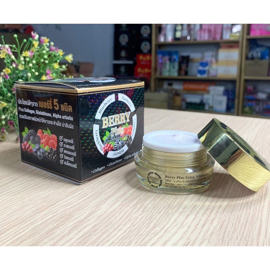✅ C. Kết Tại Shop. - Shop là chuỗi cửa hàng mỹ phẩm nội địa XT lớn và uy tín tại miền Bắc. - Uy tín được đảm bảo qua hàng vạn đơn hàng trên khắp cả nước và được bày bán tại chuỗi cửa hàng XT trên toàn quốc - Sản phẩm tại Shop đều là hàng XT nội địa cao cấp, tem mác đầy đủ, hàng mới sản xuất, date xa. - Sản phẩm chuẩn Auth, không chuẩn Auth bồi thường gấp 10 lần. - Shop c.kết cả về chất lượng lẫn hiệu quả sp, chỉ cần bạn kiên trì sử dụng shop c.kết bạn sẽ hài lòng* - Khi mua sản phẩm của Shop, khách hàng cứ kiểm tra kỹ trước khi nhận hàng. Chỉ cần bạn không hài lòng về chất lượng sản phẩm của Shop, bạn cứ từ chối nhận hàng. Shop sẽ mang về mà không thu thêm bất kỳ khoản phí nào - Tuyển sỉ và CTV toàn quốc, hàng luôn có sẵn tại hệ thống cửa hàng của Shop -------------------------------------------------------- - MUA ĐƠN HÀNG TỐI THIỂU 239K HOẶC MUA 1 LIỆU TRÌNH 3 HỘP ĐƯỢC TẶNG 1 MÁY Massage MẶT VÀ NHIỀU PHẦN QUÀ KHÁC - MUA 4 HỘP TẶNG 1 HỘP - CHÚ Ý CHỌN QUÀ, CHO QUÀ VÀO RỎ HÀNG TRƯỚC KHI TT, NẾU K ĐƠN HÀNG SẼ KHÔNG CÓ QUÀ - QUÀ TẶNG SỐ LƯỢNG CÓ HẠN, NHANH TAY MUA NGAY KẺO HẾT!! ---------------------------------------------------------- - Bạn mất tự tin khi giao tiếp vì mặt bạn bị nám, tàn nhang, đ𝐨̂̀𝐢 𝐦𝐨̂̀𝐢 - Bạn già đi mấy tuổi khiến bạn lo lắng khi soi gương - Kem mờ nám Berry plus cam kết hết nám, tàn nhang,đ𝐨̂̀𝐢 𝐦𝐨̂̀𝐢 sau ít nhất 1 liệu trình 3 hộp —-------------------------------------------------- THÔNG TIN SẢN PHẨM’ - Xuất xứ : Hàng XT cao cấp Thái Lan - Dung tích: 20g