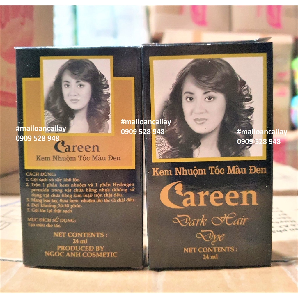 Thuốc nhuộm tóc màu đen Careen Dark Hair 24ml Thành phần dưỡng ẩm từ mật ong nguyên chất, chiết xuất tơ tằm dưỡng tóc, giúp tóc lên màu đẹp, mềm mượt và không bị khô xơ. - Dạng bọt với hàm lượng vừa đủ, không gây lãng phí - Tóc lên màu đẹp tự nhiên sau khi sử dụng - Cách sử dụng đơn giản, nhanh chóng, không để lại mùi khó chịu. 🌸 THÀNH PHẦN BỘ SẢN PHẨM: - Lọ thuốc nhuộm 40ml (lọ số 1) - Lọ dung dịch tạo bọt kích màu 60ml (lọ số 2) - Đôi găng tay 🌸 HƯỚNG DẪN SỬ DỤNG: Thuốc nhuộm tóc Nhật Kao Blaune phủ bạc dạng bọt được thiết kế để các bạn tự nhuộm tóc tại nhà nên cách sử dụng sản phẩm rất đơn giản: - Đeo đôi găng tay - Đổ lọ thuốc nhuộm 40ml vào lọ dung dịch kích màu 60ml và trộn đều (lắc đảo đầu chai khoảng 5 lần (chú ý đóng chặt nắp và không lắc lên xuống quá mạnh) - Lắp vòi tao bọt, đeo đôi găng tay và bóp bọt ra tay - Chấm bọt lên tóc (trạng thái tóc khô), nhẹ nhàng phủ đều bọt lên toàn bộ tóc (chú ý không để thuốc rây vào mắt) - Chờ 30 - 45 phút, sau đó xả sạch với nước - Gội lại 1 lần bằng dầu gội, sau đó dùng gói kem xả dưỡng tóc và xả sạch lại với nước - Để màu nhuộm được bền, sau khi nhuộm xong, bạn nên gội đầu bằng dầu xả trong khoảng vài ngày, sau đó gội đầu bằng dầu gội đầu như thông thường 🌸 CHÚ Ý: Trước khi trộn thuốc 1 tiếng, bạn nên bảo quản thuốc ở phòng có nhiệt độ 20 - 30oC vì nếu để thuốc ở môi trường nóng quá hoặc lạnh quá sẽ khó tạo - Sỉ Sữa Tả chuyên cung cấp Sỉ và Lẻ: SỮA, TẢ, HÀNG TIÊU DÙNG, MỸ PHẨM, ... - Địa chỉ: + Cs1: 27-29 Kp, F1, Tx. Cai Lậy, TG + Cs2: QL1A, F4, Tx.Cai Lậy, TG + Cs3: QL62, TT. Tân Thạnh, H. Tân Thạnh, LA.