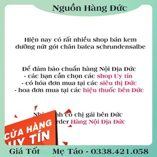 🔹 Tránh dính vào mắt. Để xa tầm với của trẻ em. 🔹 Bảo quản nơi khô thoáng. Tránh áng nắng mặt trời và nơi có nhiệt độ cao. 🔹 Chỉ sử dụng Balea SchrundenSalbe bên ngoài da. CAM KẾT * Hàng shop về hằng tháng nên hàng lúc nào cũng hàng mới, date dài. * Bill Đức đầy đủ * Hoàn tiền 100% hàng không đúng với hình ảnh và chất lượng sản phẩm.