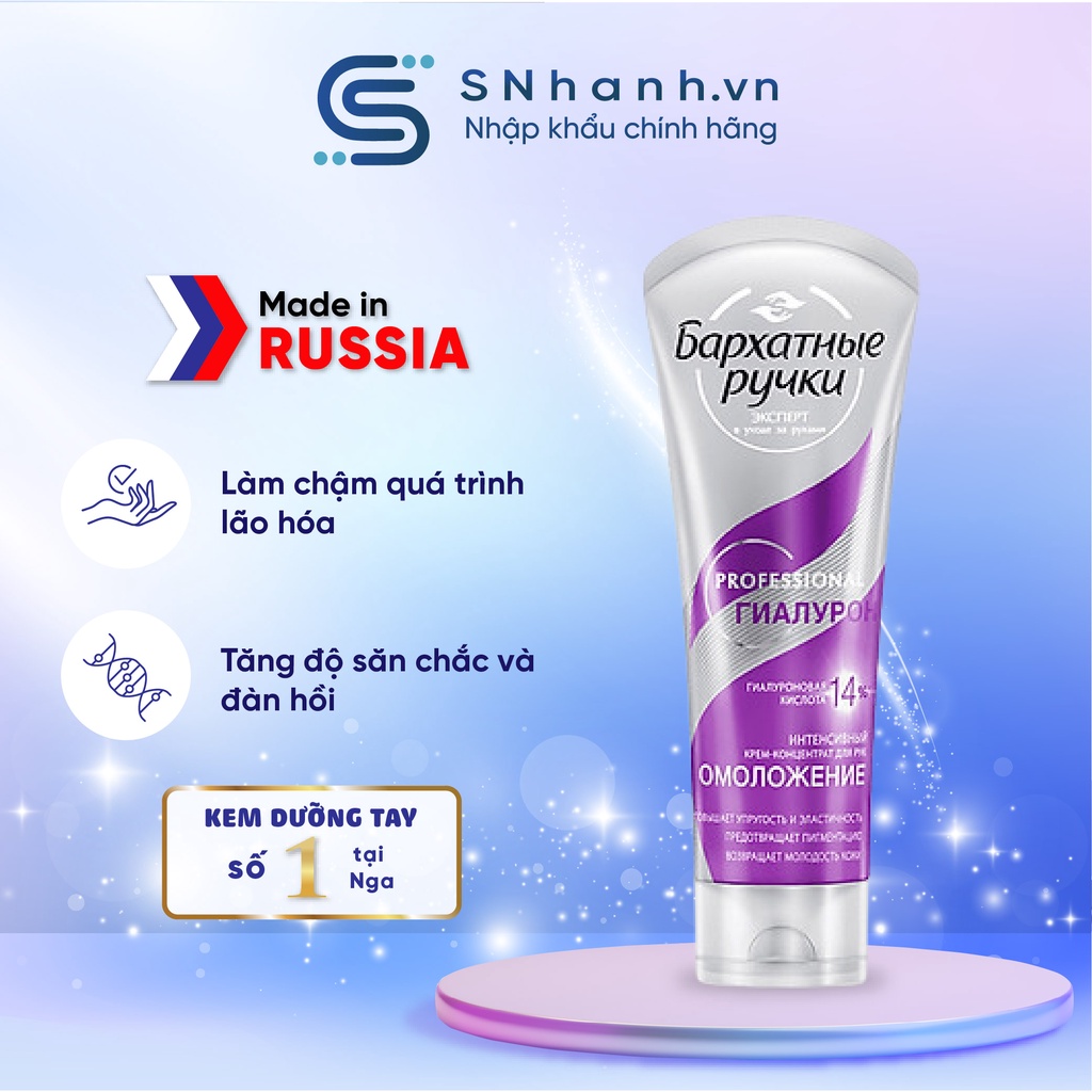 𝑪𝒐̂𝒏𝒈 𝒅𝒖̣𝒏𝒈: • Giúp dưỡng ẩm lâu dài cho da tay • Giúp kích hoạt các nguồn chống lão hóa của chính làn da • Làm đều màu da • Kem làm chậm quá trình lão hóa, tăng độ săn chắc và đàn hồi, làm mờ các nếp nhăn, phục hồi sự mềm mại và mịn màng của da tay • Dinh dưỡng và hydrat hóa vượt trội trong 48 giờ • Kết cấu phong phú để chăm sóc chuyên sâu • Không để lại màng nhờn • Tác dụng của kem được xác nhận qua các thử nghiệm lâm sàng