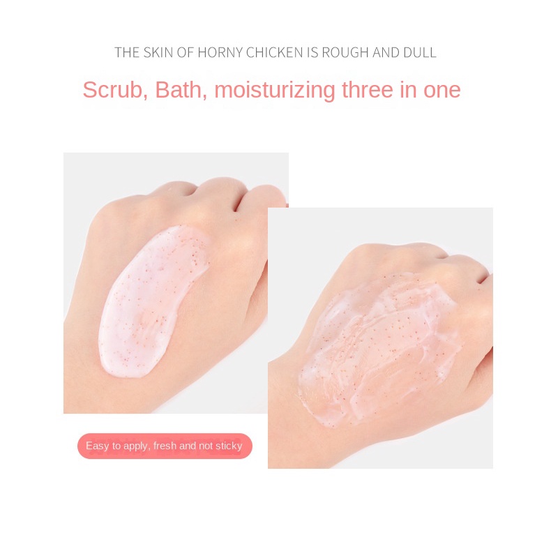 🍑 Cách sử dụng: Lấy một lượng vừa đủ tẩy tế bào chết và thêm một lượng nước thích hợp vào lòng bàn tay / Massage nhẹ nhàng theo chuyển động tròn, khuỷu tay, đêm, mắt cá chân, v.v. bằng khăn, rửa sạch bằng Nước ấm và lau bằng khăn,