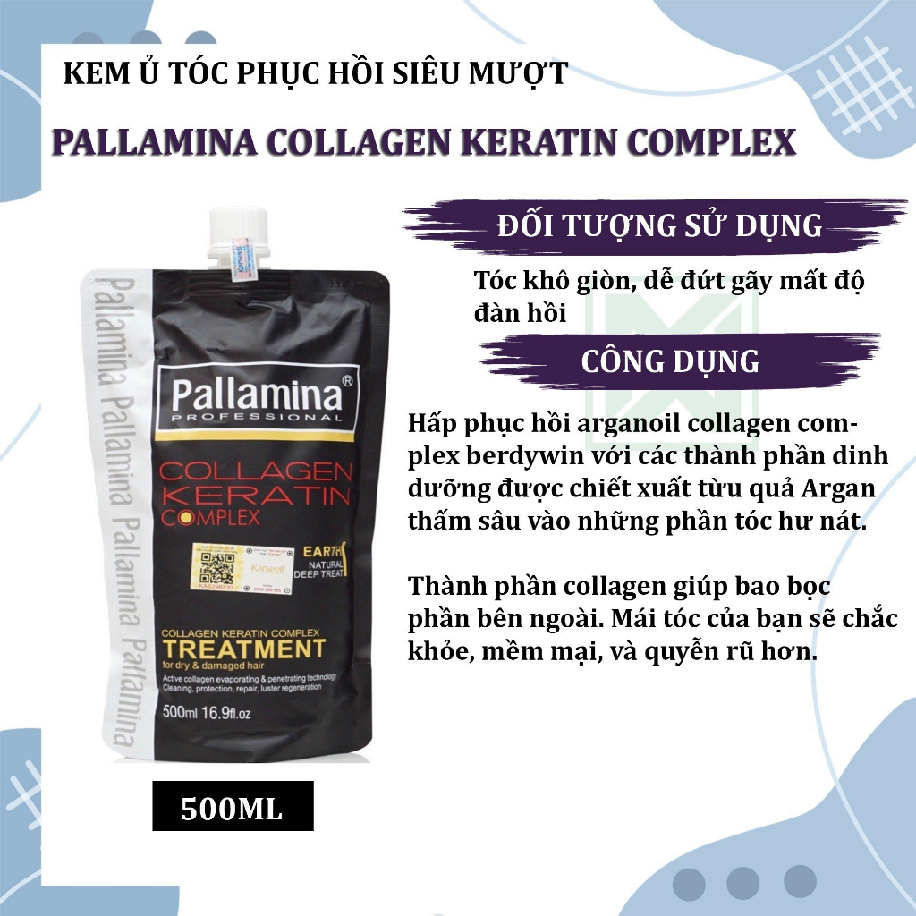 Giới thiệu Kem ủ tóc PALLAMINA COLLAGEN KERATIN 500ml phục hồi siêu mượt cho tóc giòn, dễ gãy, mất độ đàn hồi