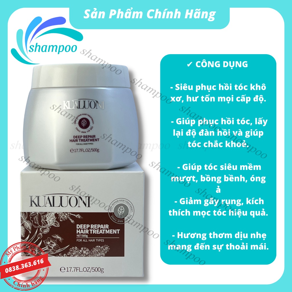 Kem ủ tóc phục hồi siêu mượt Collagen KUALUONI 500ml dưỡng tóc đẹp như salon tại nhà - Xuất xứ: HViệt Nam - Dung tích: 500ml - Ngày sản xuất: Xem trên bao bì sản phẩm