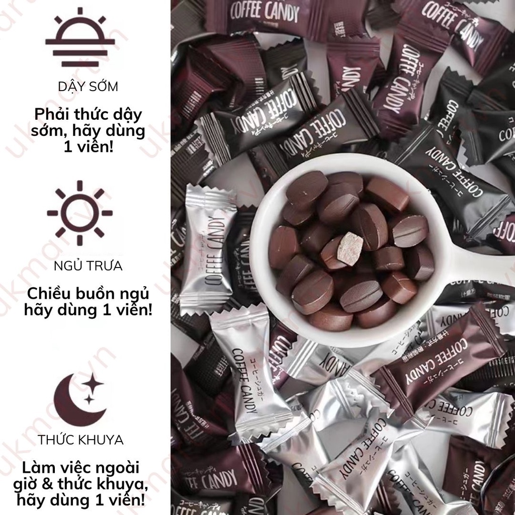 - Mỗi ngày ăn 1 viên kẹo coffee giúp não bộ hoạt động minh mẫn hơn, cho máu lưu thông đều để giữ huyết áp ổn định, giải toả căng thẳng, stress. - Đối với chị em phụ nữ không quá chuộng vị đắng của cà phê. Thì sản phẩm cà phê sẽ là lựa chọn phù hợp nhất ạ. Vị cà phê nhè nhẹ và vị thoảng ngọt. - Sản phẩm đóng gói riêng lẻ từng viên, đặt trong hộp chứa bắt mắt. Ngoài vị thơm ngon thì mang tặng người yêu thương hay bạn bè cũng là rất tuyệt vời. - Trong những viên kẹo này cũng không sử dụng chất hóa học, chất bảo quản. Đảm bảo an toàn cho sức khỏe Viên kẹo nhỏ nhắn xinh xắn dễ dàng mang theo.