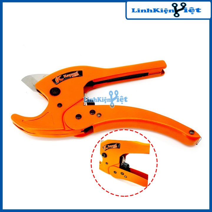 Kéo cắt ống nhựa asaki săc bén, chất lượng tốt Kéo cắt ống nhựa là dụng cụ tối ưu nhất dành cho việc lắp đặt, sữa chữa ống nước và mạch điện. Kéo cắt ống nhựa PVC là dụng cụ cầm tay chuyên dùng để cắt ống nhựa pvc, ống nhôm nhựa, ống dẫn khí đốt, ... các loại ống nhựa pvc khác. Lưỡi dao cắt được làm từ hợp kim nhôm cao cấp, gia công tỉ mỉ bởi công nghệ Nhật Bản có độ sắc bén, chắc chắn khi sử dụng, không có hiện tượng bị ăn mòn, tránh việc gỉ sét. Đặc biệt, kìm cắt pvc được thiết kế trang nhã, có màu cam giúp việc kích thích khả năng sáng tạo của người dùng. Thông số kỹ thuật của kìm cắt ống nhựa: Hãng sản xuất: Asaki Công nghệ: Nhật Bản Lưỡi dao: được làm bằng hợp kim nhôm cao cấp Đường kính ống có thể cắt: 42mm Màu sắc: cam Cuối cán kéo có chốt khóa khi không sử dụng: đảm bảo sự an toàn Phân loại: AK - 0081 AK - 0082 Trọng lượng: AK - 0081: 300 gram AK - 0082: 500 gram
