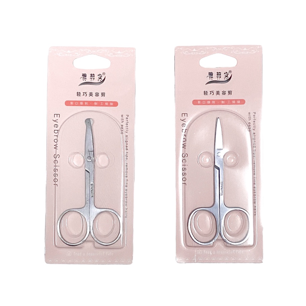 Kéo tỉa mày có hai kiểu: Đầu nhọn: Kéo mũi nhọn có đầu cong giúp dễ dàng cắt tỉa lông mày Đầu tròn: Nếu bạn sợ mũi nhọn sẽ dễ làm bị thương bạn, thì kéo đầu tròn là lựa chọn hợp lí cho bạn nè