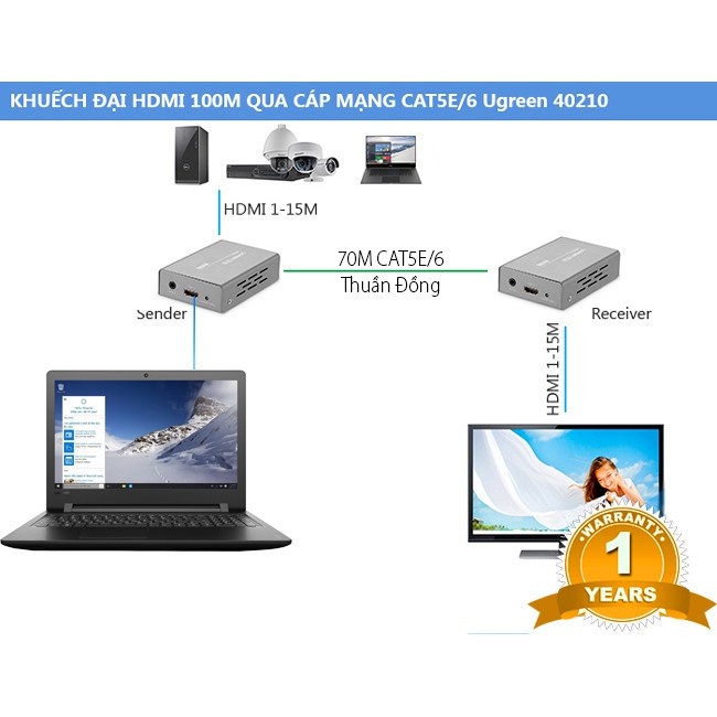 Máy Tính & Laptop > Thiết Bị Mạng > Bộ Chuyển Đổi Mạng > Bộ kéo dài HDMI qua dây mạng Cat5/Cat6 70met Ugreen 40210 IR (Bộ 2 cái+ Adapter) Chính Hãng, giá đã bao gồm VAT