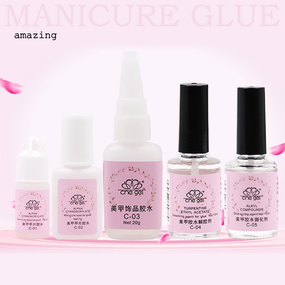 Type: Nail Glue Net Weight: 1: Nail Glue: 3g, 2: Nail Glue: 7g, 3: Nail Glue: 20g, 4: Curing Agent: 15ml, 5: Dissolving Agent: 15ml Features: Nail Decor, Manicure Tool, Non Toxic Note: Due to the light and screen setting difference, the items color may be slightly different from the pictures.