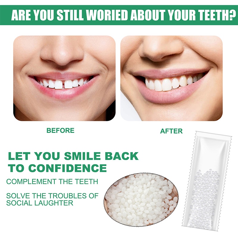 Tính năng ' - Nó sử dụng các vật liệu làm từ nhựa tự nhiên , không độc hại và không vị , sẽ không được cơ thể con người hấp thụ , có thể tái sử dụng và thân thiện với môi trường . - Thao tác đơn giản , không cần dụng cụ đặc biệt. hoàn thành trong vài phút, và chất kết dính chắc chắn và không dễ rơi ra - Dùng được cho răng quá nhiều , răng gãy , mất răng , răng giả Halloween, vv .