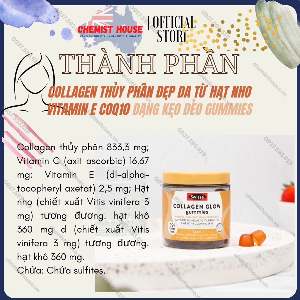 Giới thiệu Kẹo dẻo bổ sung Collagen thủy phân Úc - Swisse Beauty Collagen Glow Gummies 45 viên