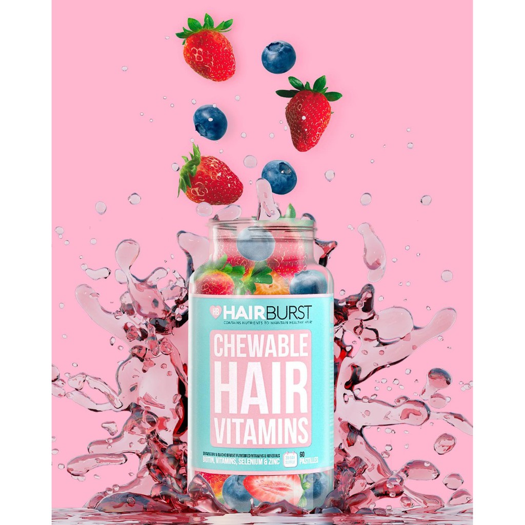 Kẹo Dẻo Vitamin Chăm Sóc, Kích Thích Mọc Tóc Hairburst Chewable Hair Vitamins là thực phẩm chức năng hỗ trợ làm đẹp mái tóc của thương hiệu HAIRBURST - hãng mỹ phẩm chuyên chăm sóc tóc đến từ Anh. Công thức độc đáo chứa các thành phần chiết xuất hoàn toàn từ thiên nhiên, giúp bổ sung các dưỡng chất thiết yếu nuôi dưỡng cho mái tóc thêm chắc khỏe từ bên trong, bóng đẹp từ bên ngoài, cải thiện tình trạng tóc gãy rụng, giúp tóc phát triển nhanh hơn, dày hơn, dài hơn và khỏe mạnh hơn. Dạng viên kẹo dẻo thơm ngon, giúp tạo cảm giác thích thú khi sử dụng.
