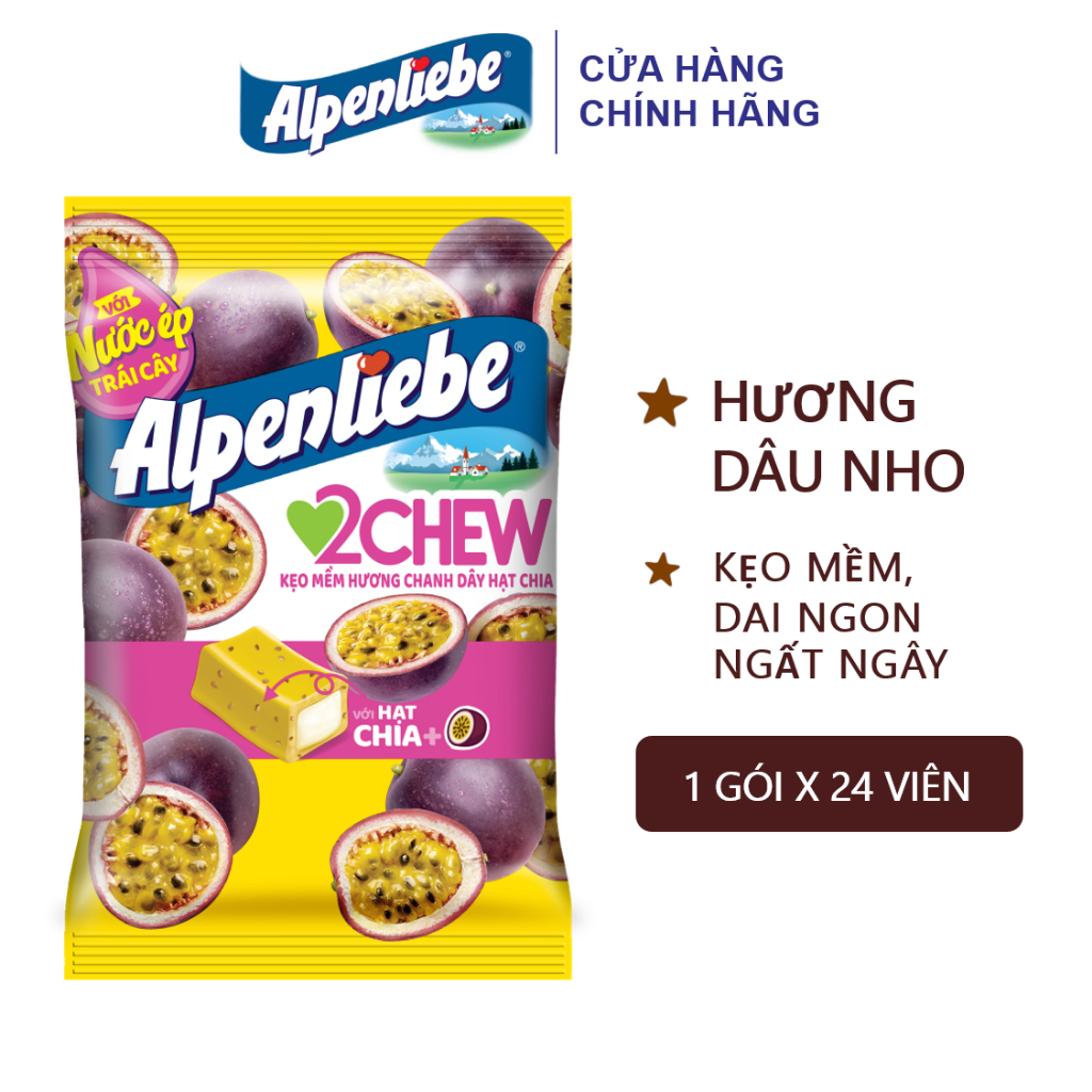 Giới thiệu Kẹo Mềm Alpenliebe 2Chew Hương Hỗn Hợp Dâu & Nho