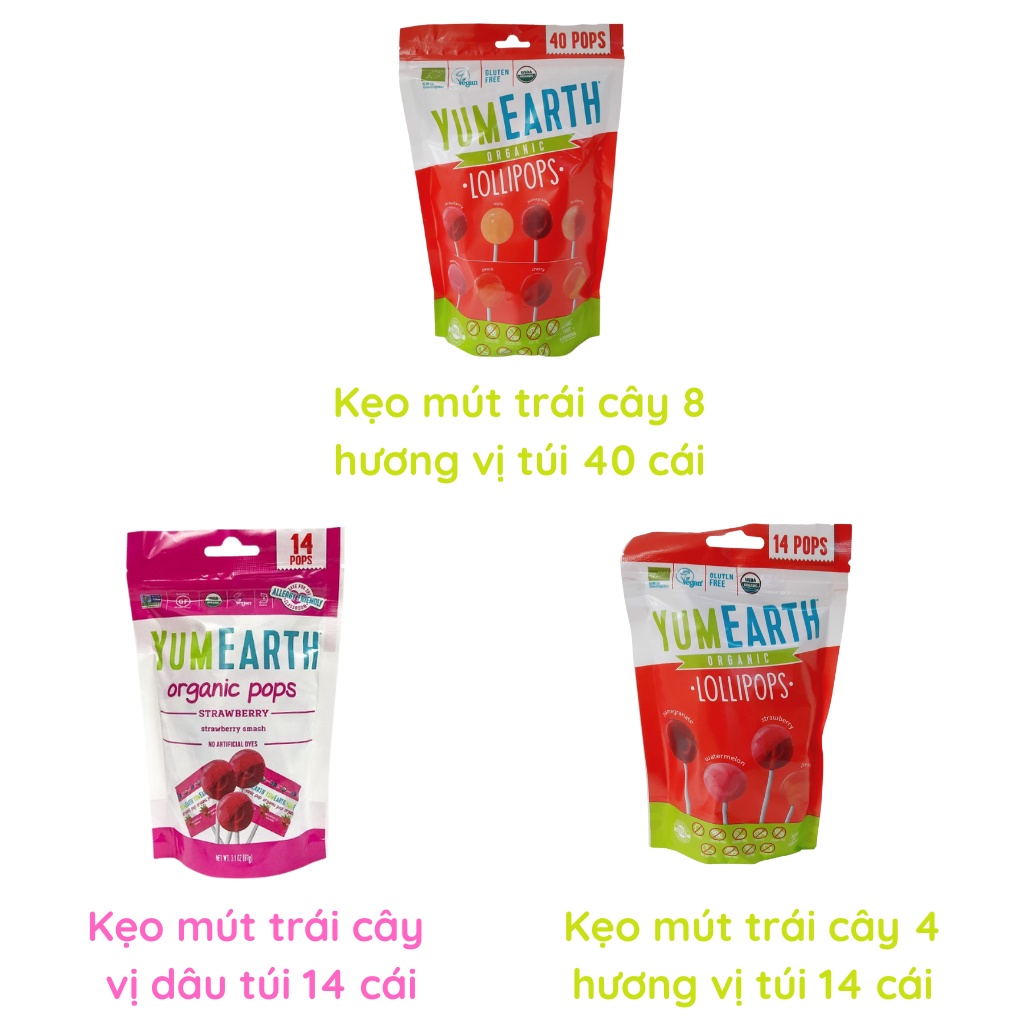 Kẹo trái cây hữu cơ yumearth - Yum earlth Organic Lollipops Các bé thường thích ăn các loại kẹo như: kẹo mút, kẹo viên ngậm, kẹo dẻo, các mẹ cũng muốn có một món quà để dỗ dành bé, thưởng khích lệ động viên cho bé. Tuy nhiên các mẹ thường lo ngai vì sợ thành phần không đảm bảo, sợ quá nhiều đường tinh luyện, cùng các phẩm màu và hương vị nhân tạo.