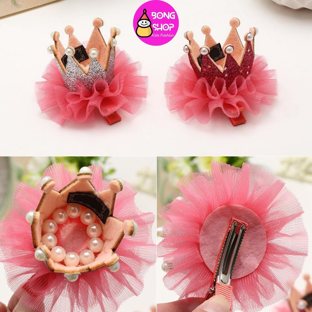 Giới thiệu Kẹp tóc bé gái hình vương miện công chúa phủ kim tuyến viền ren, turban, cặp tóc cho bé
