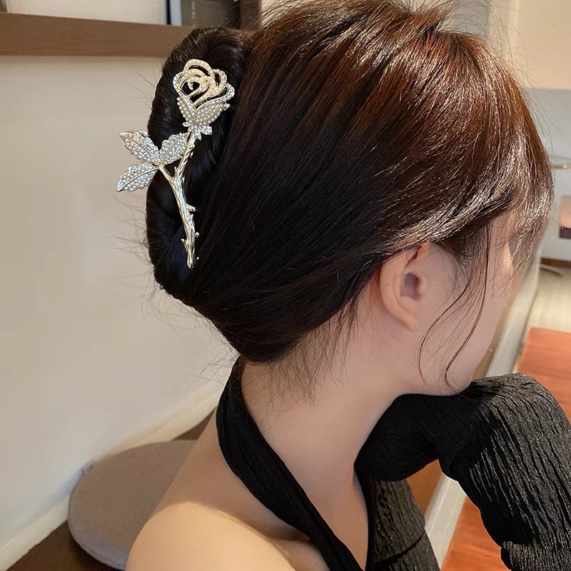 [Size To] Kẹp Tóc Càng Cua Kim Loại Phong Cách Hàn Quốc Hình Hoa Hồng Đính Đá Ngọc Cho Bạn Gái Mẫu Mới Sang Chảnh Kẹp Tóc Đi Học Đi Chơi Đi Tiệc Mainia Shop