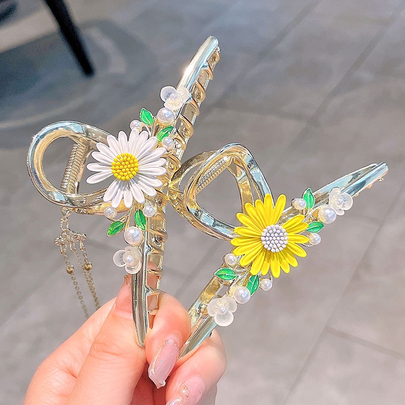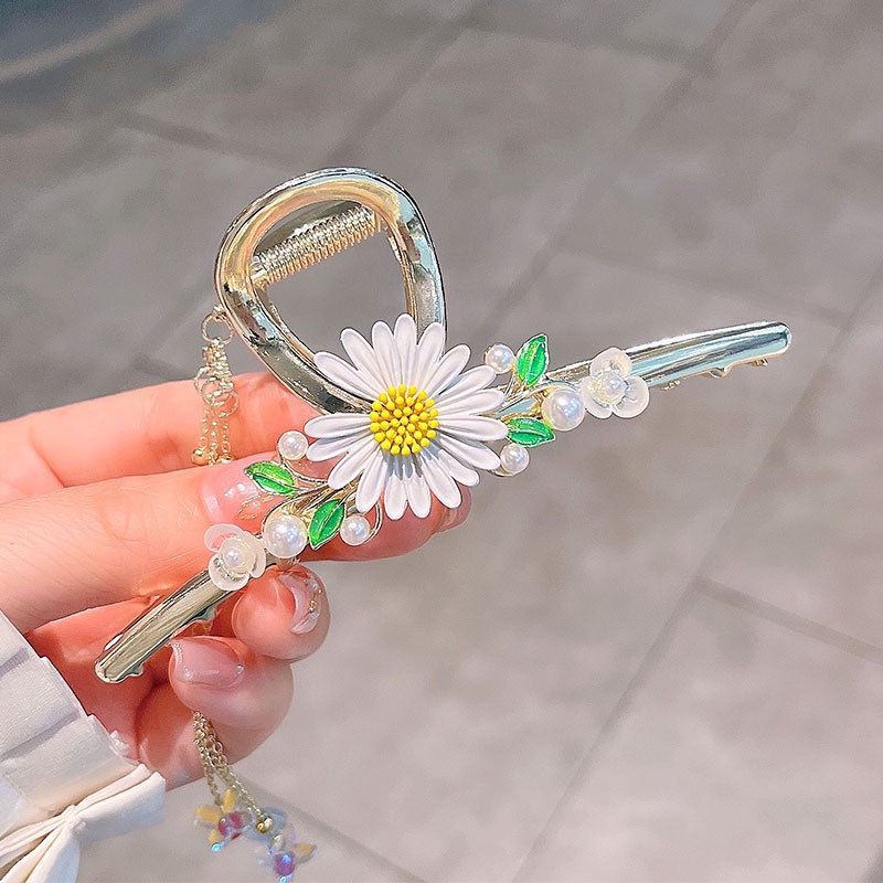 Giới thiệu Kẹp tóc HAIMEIKANG hình hoa cúc nhỏ 11cm phối tua rua và ngọc trai thời trang cho nữ