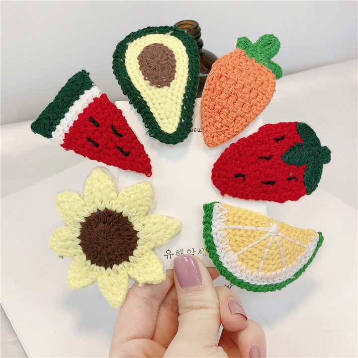 Giới thiệu Kẹp tóc Hàn Quốc K176 len đan handmade dễ thương hình hoa quả