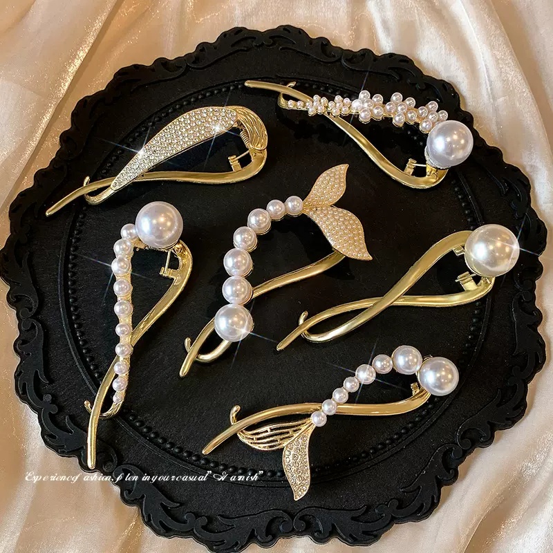 ❤❤Nguồn cung cấp hàng có sẵn: Thời trang Ngọc trai pha lê vàng Bạc Kẹp tóc cho phụ nữ Bướm đuôi cá Nơ hoa ếch Khóa tóc Phụ kiện tóc