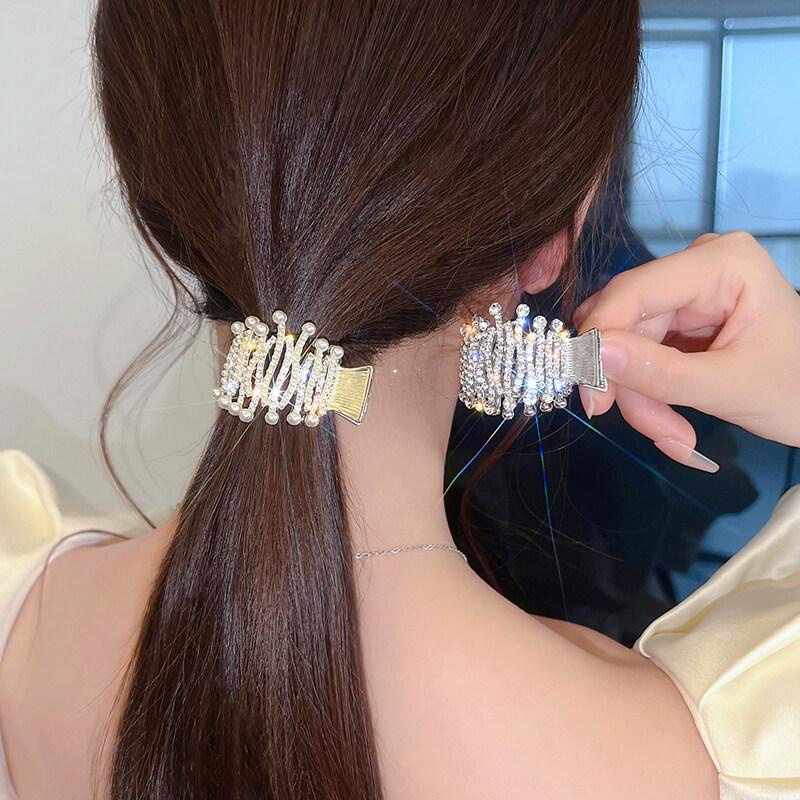 Giới thiệu Kẹp Tóc Kim Loại Đính Đá Và Ngọc Trai Nhân Tạo Đuôi Ngựa Tiểu Thư Sang Chảnh Phụ Kiện Tóc Hot