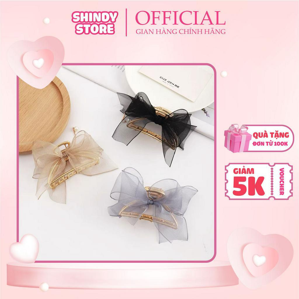 Ưu điểm sản phẩm: Kẹp tóc kim loại Hàn Quốc Min kẹp tóc Càng cua kim loại phối nơ voan hạt Ngọc