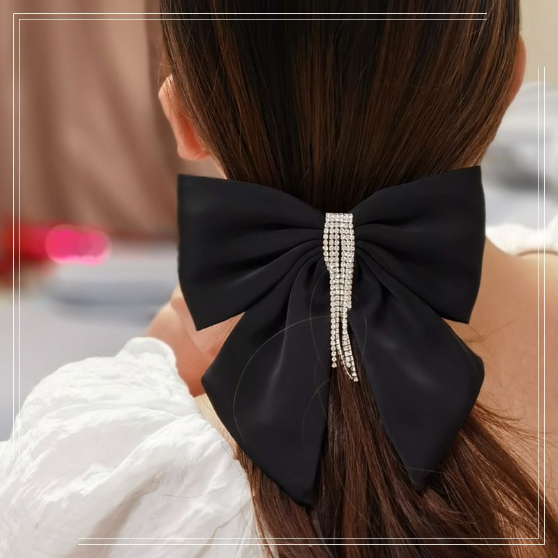 Giới thiệu Kẹp Tóc Lò Xo Đính Đá Bản Lớn Màu Đen Phong Cách Hàn Quốc