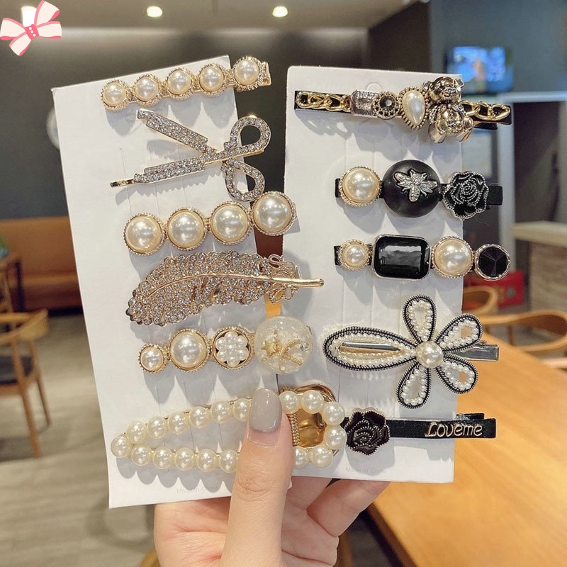 Đặc điểm: Màu sắc: như hình Chất liệu: Ngọc trai + Hợp kim Số lượng: 6 cái