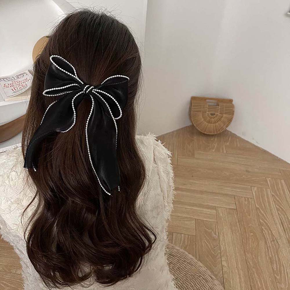 Dành cho: nữ Phong cách: Hàn Quốc Chất liệu: Ngọc trai, sợi tơ tằm Màu sắc: đen, trắng Loại sản phẩm: Phụ kiện tóc Gói hàng bao gồm: 1 x kẹp tóc Lưu ý: Các sản phẩm có chất liệu vàng, kim cương, đá quý trong shop đều là xi mạ/ nhân tạo.