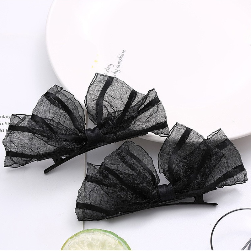 Giới thiệu Kẹp Tóc Nơ Ren Dễ Thương Màu Đen/Be Cho Nữ