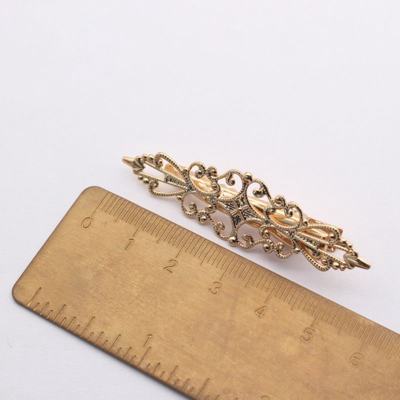 Metal alloy vintage duckbill clips, geometric hollow out floral crown shaped, metallic glitter solid color, elegant carving design.