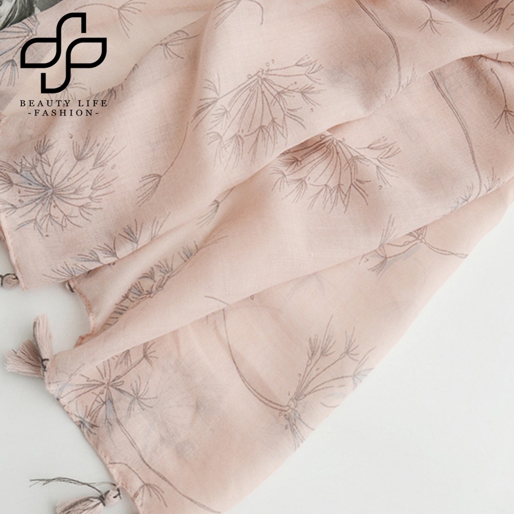 Type: Scarf Gender: Womens Material: Cotton and Linen Occasions: Party, Dating, Travel, Outdoor, Daily Wear, etc Features: Tassel Design, Dandelion Print, Long, Soft Size: 180cm x 100cm/70.87" x 39.37" (Approx.)