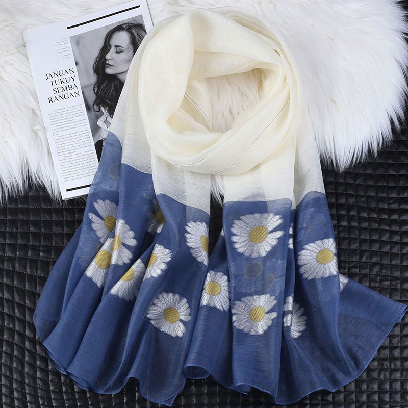Giới thiệu Khăn Choàng Lụa Mulberry Dài In Hoa Cúc Nhỏ Màu Gradient Mẫu Mới 2022 Phong Cách Hàn Quốc Cho Nữ