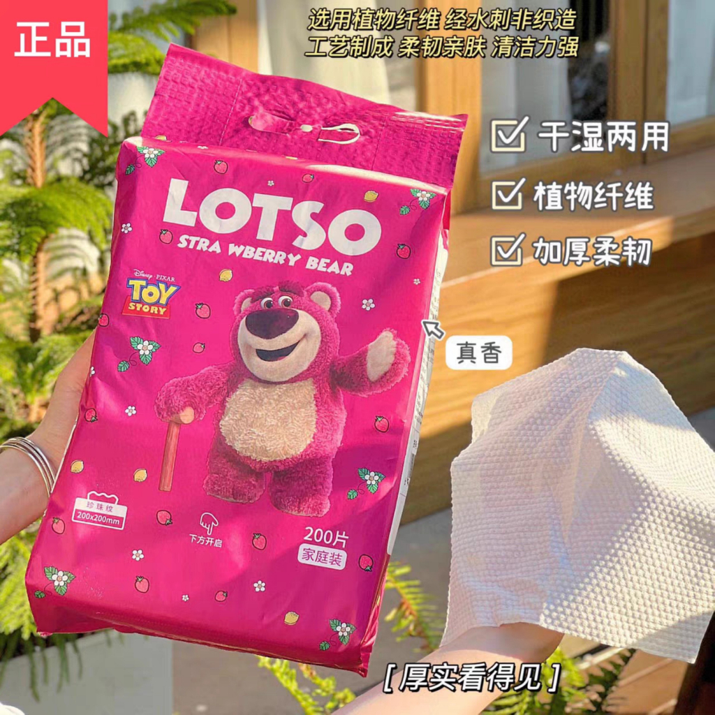 Giới thiệu Khăn lau đa năng gấu dâu LOS.TO túi 200 tờ chất khăn mềm mướt êm ái an toàn cho da A5