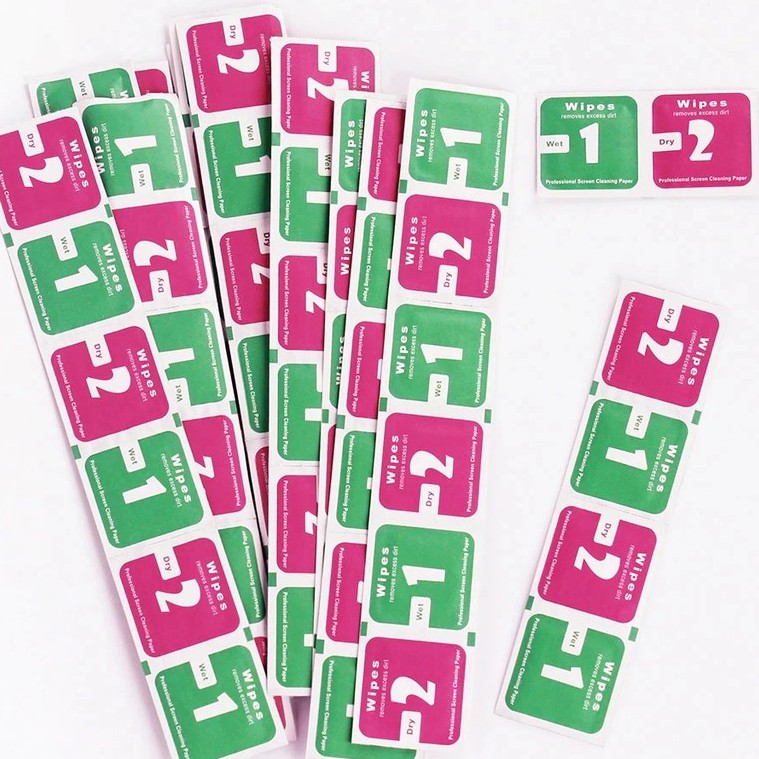 Khăn lau màn hình theo bịch Lưu ý Khăn lau màn hình với số lượng từ 200 hoặc nhiều hơn gần gấp đôi bên mình không thể đếm từng cái quý khách thông cảm miếng lau màn hình điện thoại, ipad, MTB, laptop.v.v. để dán miếng dán cường lực hay lau màn hình .