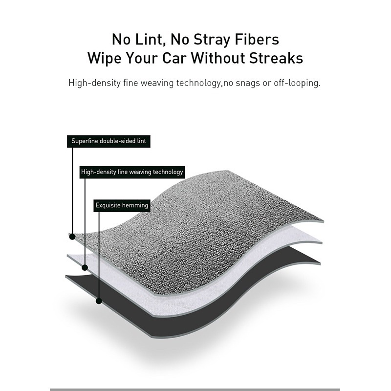 - Khăn được thiết kế với màu xám nhẹ với 3 lớp (#1 Lớp sợi siêu mịn, #2 Lớp vải dệt, #3 Lớp viền). Với chất liệu là vải sợi siêu mềm mịn không gây trầy xước bề mặt, thấm hút nước tốt và đặc biệt là không để lại sợi vải trên bề mặt khi lau. Chất liệu cao cấp không bị ra màu, cực kì mềm mại đối với da tay và bề mặt ô tô.