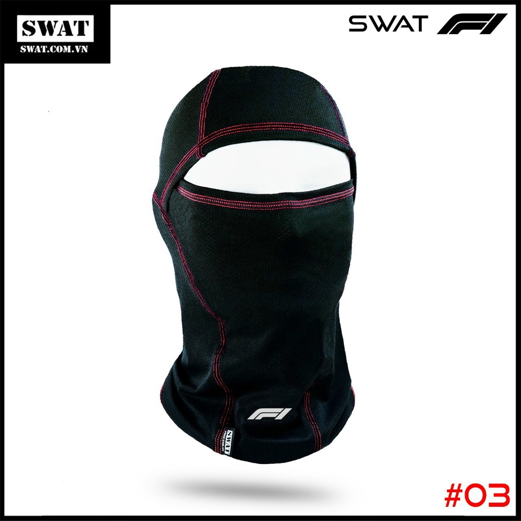 Giới thiệu Khăn ninja trùm đầu màu đen thun lạnh Swat F1 đen chỉ den đỏ đội nón mũ fullface co giãn
