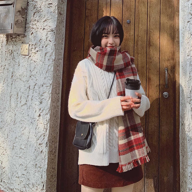 Giới thiệu Khăn quàng cổ nam nữ chất liệu len dạ kẻ caro da báo phong cách Vintage Hàn Quốc; Khăn kẻ 2 mặt; K04 - BONMIE