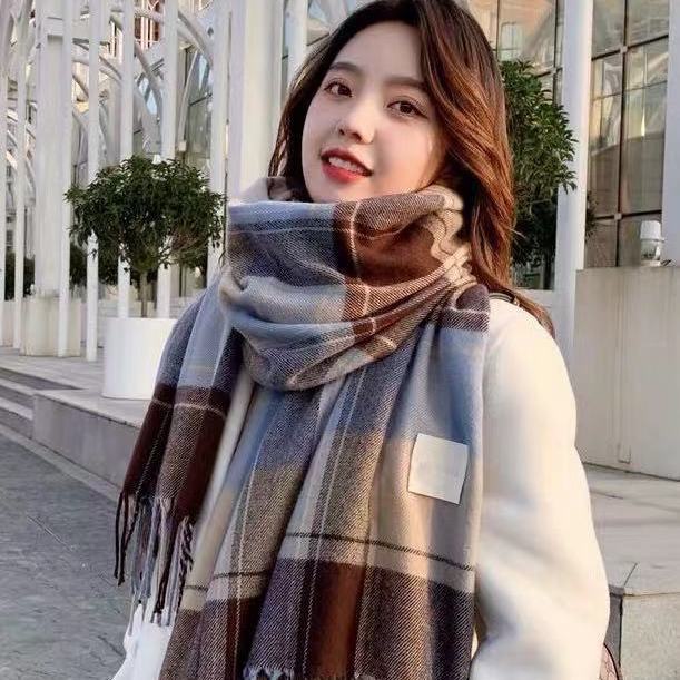 Giới thiệu Khăn quàng sọc ca rô hai mặt dày dặn giữ ấm thời trang mùa đông Hàn Quốc cho nữ