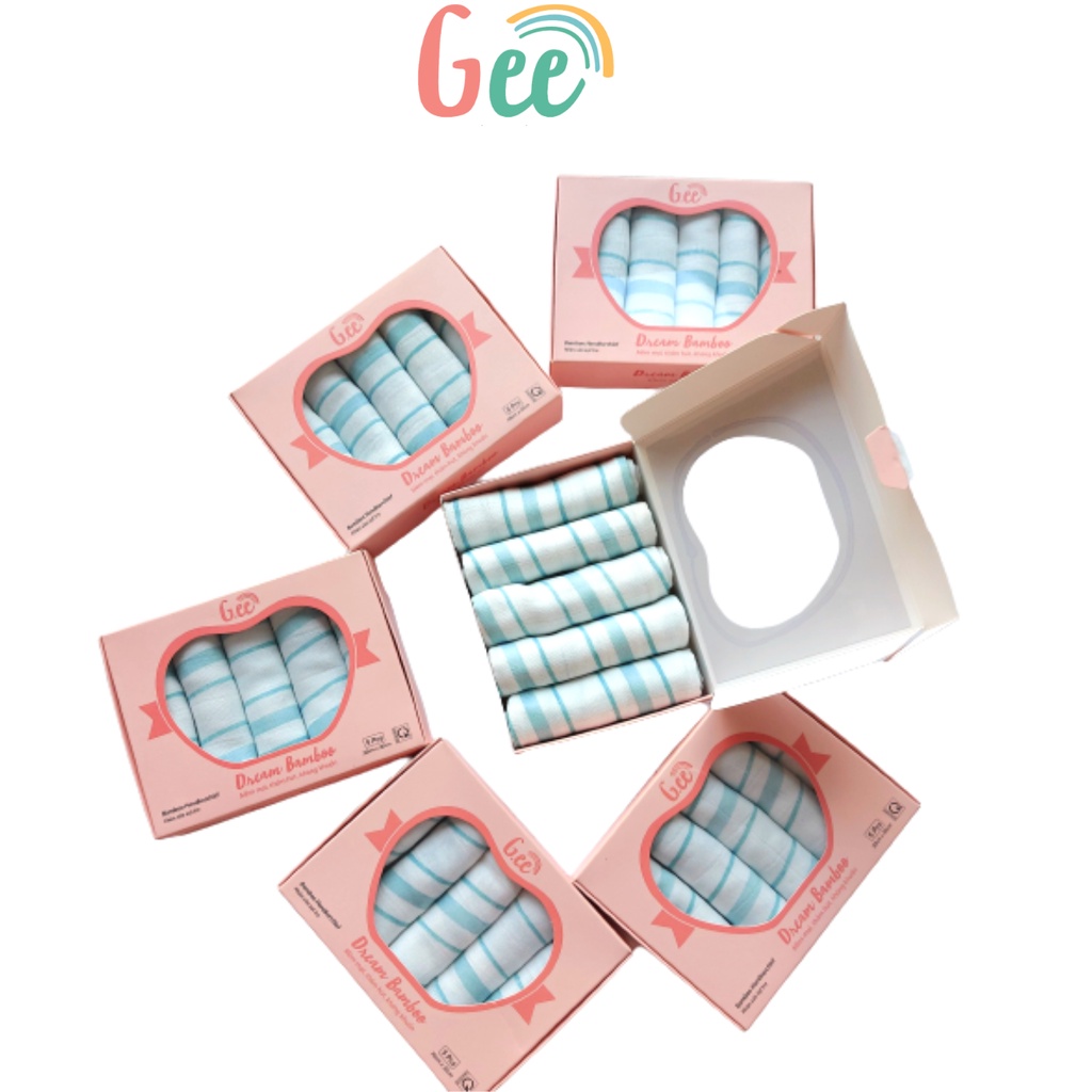 Khăn Sữa Xô Sợi Tre Sọc Xanh Vải Bamboo Đa Năng Cho Bé Trẻ Sơ Sinh Hai Lớp Cao Cấp 30x30cm G-ee Kids Hộp 5 Khăn
