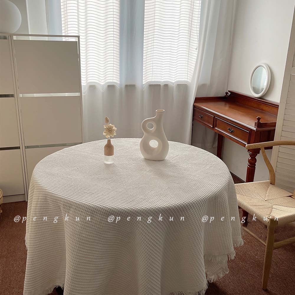 Giới thiệu Khăn Trải Bàn Cotton Lanh Trơn Màu Mềm Mại Viền Tua Rua Phong Cách Nhật Bản