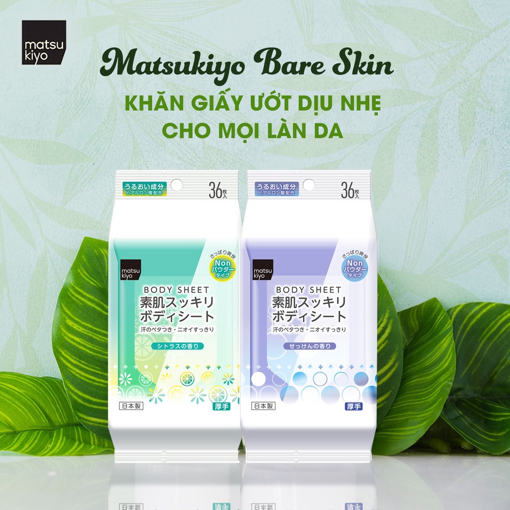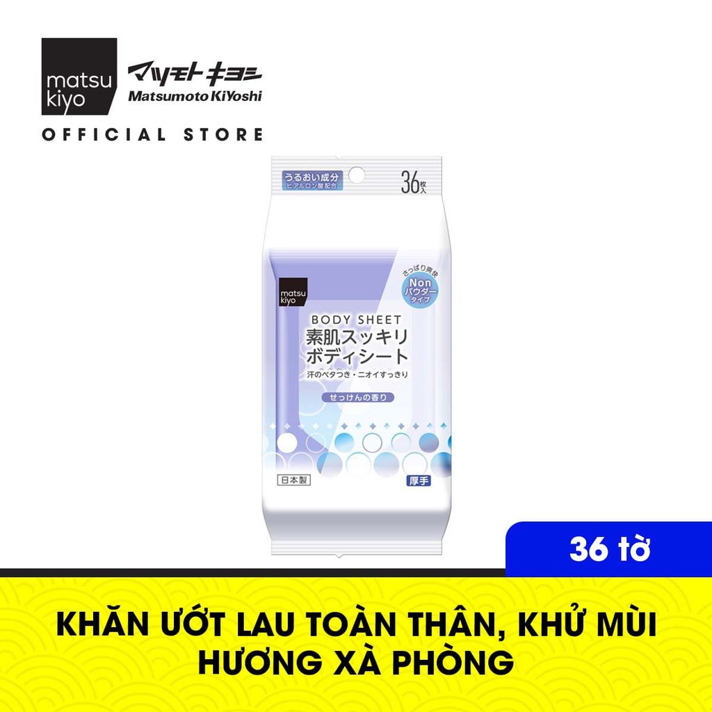 Giới thiệu Khăn ướt lau toàn thân Matsukiyo Suhada Sukkiri hương xà phòng 36 tờ