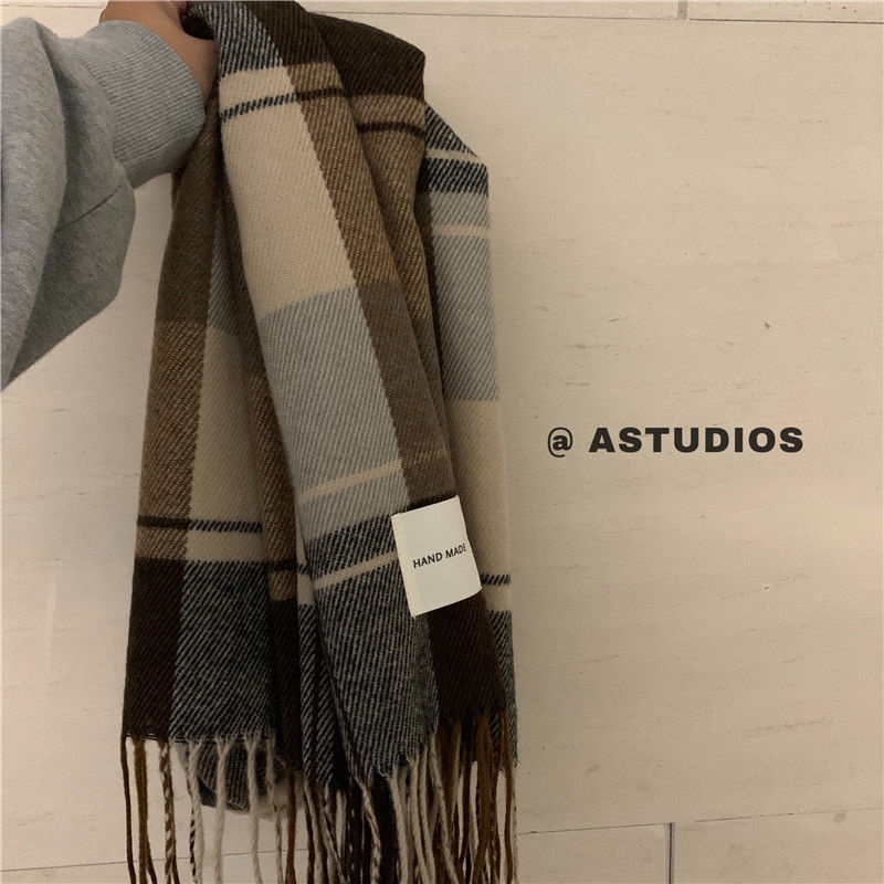 Giới thiệu KhănChoàng Cổ Họa Tiết Sọc Caro Phối Tua Rua Thời Trang Mùa Đông Cho Cặp Đôi