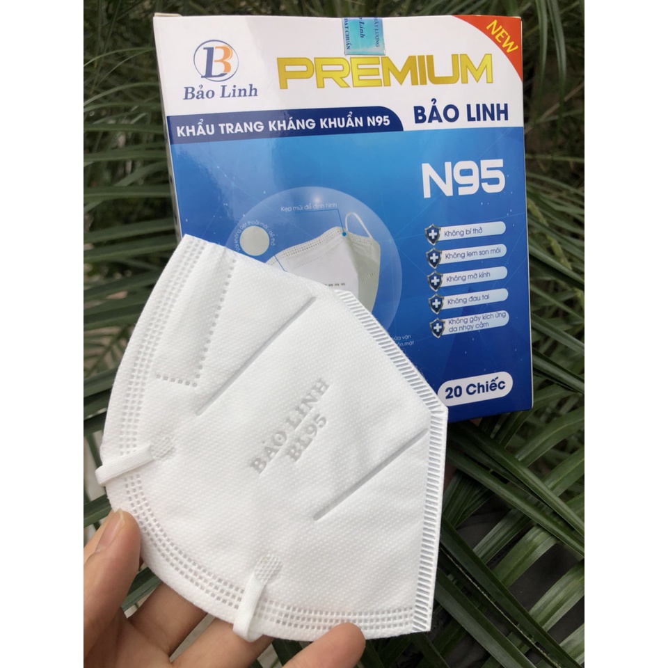 Hộp 20 Khẩu trang kháng khuẩn N95 Thương Hiệu BẢO LINH (Tiêu Chuẩn BFE ≥95%) Khẩu Trang 5 Lớp BL95 sản xuất theo công nghệ hiện đại, giúp ngăn ngừa vi khuẩn, giọt bắn, khói bụi.. hiệu quả ----------------------------------- MÔ TẢ SẢN PHẨM Kích thước khẩu trang : 160 x 105 mm Độ dài thanh nẹp mũi : 100-110 mm Độ dài dây đeo : 165 mm Đóng gói : 20 cái / hộp .Khẩu trang không Van Màu sắc : Trắng - Sản phẩm là khẩu trang N95 của cty Bảo Linh sản xuất nên logo trên khẩu trang ghi tắt của tên cty là BL95 nhẹ ạ ----------------------------------- ĐẶC TÍNH SẢN PHẨM 1. Chất lượng cao cấp, mềm mại thoải mái, nhẹ nhàng cho da. 2. Thoáng khí, giảm cảm giác ẩm ướt khi đeo khẩu trang. 3. Thiết kế nẹp mũi dạng ấn ôm khít sống mũi, giảm sương mù trên kính mắt. 4. Tai đeo có độ đàn hồi cao, tránh gây khó chịu khi sử dụng trong thời gian dài. Chất liệu cao cấp : Meltblown tránh vi khuẩn, vải không dệt mềm mại không gây kích ứng da, thoải mái nhẹ nhàng, mang đến trải nghiệm sử dụng khác biệt. ⭐ Thông tin sản phẩm ✔ Khẩu trang BL95 sử dụng công nghệ hút tĩnh điện có khả năng lọc được 95% các hạt có kích thước siêu nhỏ đến 0.3μm. ✔ Khẩu trang BL95 sử dụng công nghệ hút tĩnh điện có khả năng lọc được 95% các hạt có kích thước siêu nhỏ đến 0.3μm. ✔ Cấu trúc 3D độc đáo ôm khít, che kín khuôn mặt giúp bảo vệ người sử dụng an toàn, che được các bụi mịn. ✔ Màu sắc trắng tạo cảm giác tươi mới và cảm quan cho chúng ta biết khẩu trang đang bẩn hay sạch để chủ động vệ sinh khi tái sử dụng. ✔ Sản phẩm có thể giặt được nhiều lần và tái sử dụng. Đặc biệt là chất liệu bọt khí không thấm nước nên khô rất nhanh. ✔ Quai đeo bản dày chắc chắn giúp cố định khẩu trang khi đeo. ✔ Thiết kế thời trang đặc biệt hạn chế lem son môi của phái nữ và không làm mờ kính khi đeo khẩu trang.