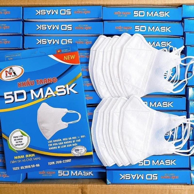 Khẩu trang 5D mask FAMAPRO [Hộp 10 cái] quai thun khẩu trang y tế kháng khuẩn dày 3 lớp vải không dệt Mô tả sản phẩm: - Kích thước khẩu trang: 160 x 105 mm - Đóng gói: 10 cái / hộp - Màu sắc : Trắng,xanh - Trọng lượng nhẹ: 50g - Chất liệu: sợi tự nhiên - Xuất xứ: Việt Nam 🍀 CÔNG DỤNG: • Ngăn ngừa bụi, vi khuẩn, các bệnh lây truyền qua đường hô hấp • Ngăn ngừa tia UV tiếp xúc da trẻ em • Thiết kế 5D ôm sát, hàn siêu âm dọc thoáng khí không gây cảm giác ngộp cho trẻ