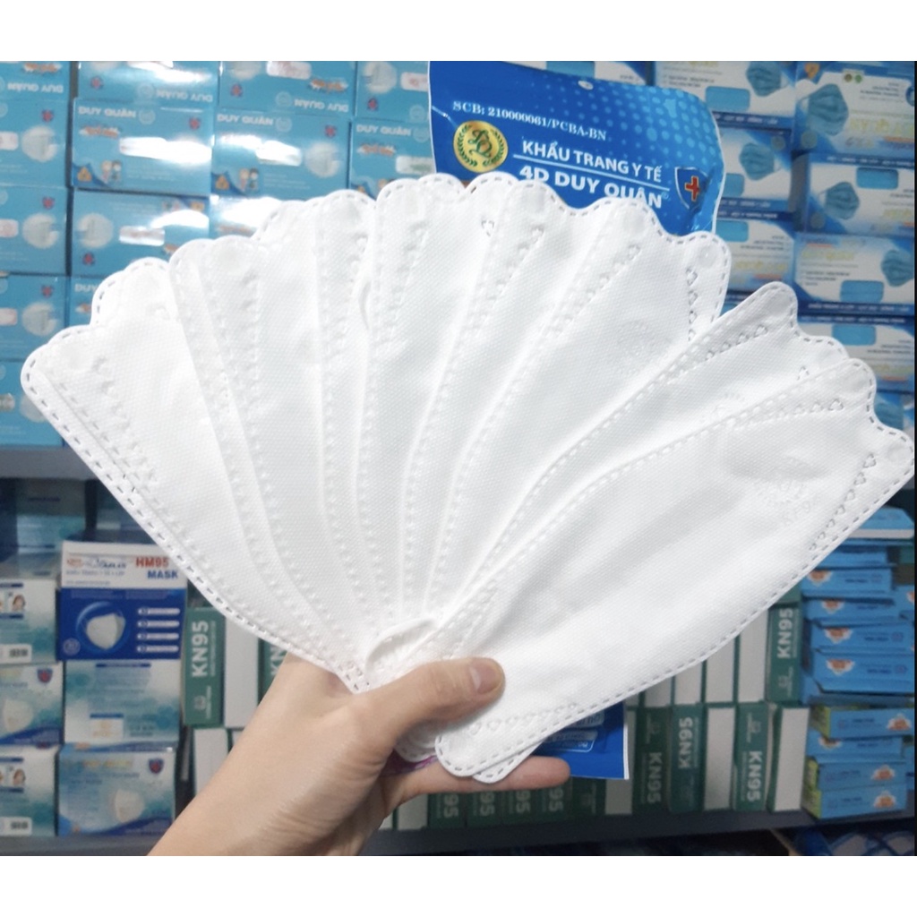 Khẩu Trang 4D hãng Duy Quân cực kỳ chất lượng bảo vệ sức khoẻ chuẩn bộ y tế Sản phẩm là từ vải kháng khuẩn có lớp SMS lọc bụi giúp lọc bụi bẩn, vi khuẩn rất tốt Form 4D hiện đại, thoáng giúp hạn chế giọt bắn bảo về sức khoẻ
