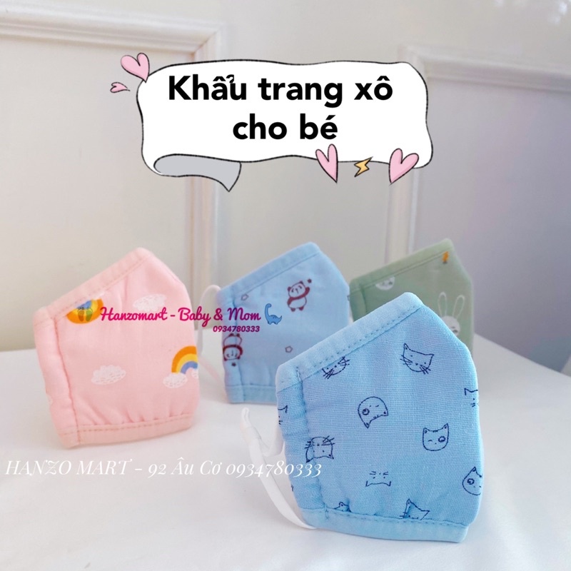 KHẨU TRANG XÔ 4 LỚP KHÁNG KHUẨN ĐÓNG TÚI ZIP CHO BÉ Độ tuổi sử dụng: 0-3 tuổi THÔNG TIN SẢN PHẨM: - Làm từ vải xô mềm mại, êm ái, thông thoáng - Thiết kế ngang hoàn toàn bằng vải mềm nên ôm sát khuôn mặt bé ngăn không cho bụi bám vào mặt bé - Vì làm bằng vải xô nhiều lớp nên vẫn tạo độ thông thoáng cho bé hít thở khi mang vào.