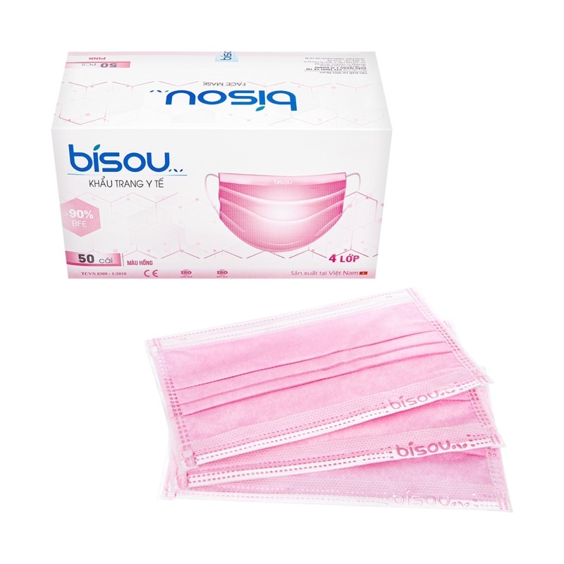 Khẩu trang y tế Bisou đã tiệt trùng được cấu tạo bởi 4 lớp có tác dụng ngăn khói, bụi, vi khuẩn xâm nhập, phòng chống các dịch bệnh nguy hiểm lây qua đường hô hấp. Sử dụng hiệu quả khi lưu thông trên đường hay làm việc trong bệnh viện, môi trường công nghiệp độc hại.