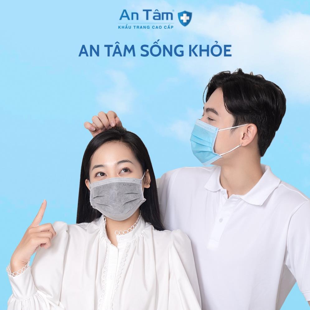 Khẩu trang y tế 4 lớp Vải Không Dệt cao cấp - Chính Hãng AN TÂM - Hộp 50 cái thích hợp sử dụng trong tất cả các lĩnh vực: y tế, trung tâm thẩm mỹ, môi trường công nghiệp, sử dụng hằng ngày để ngăn ngừa khói bụi và dịch bệnh