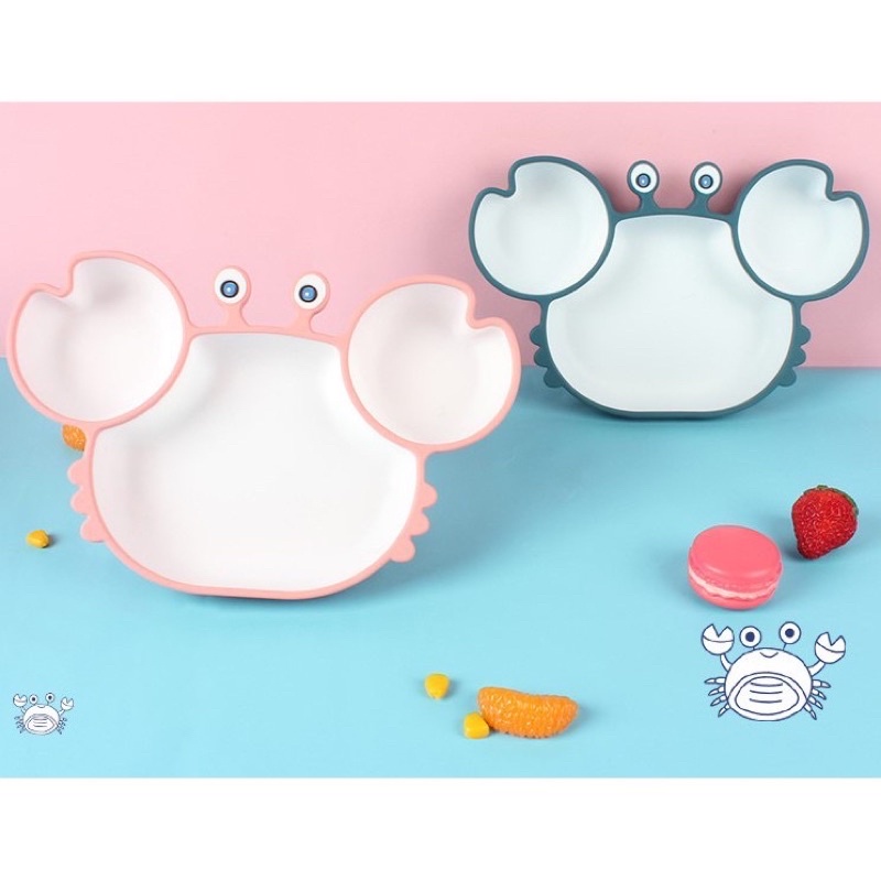 Khay Hình Con Cua, Khay Silicon Có Đế Dính Hút Chân Không Chống Lật Cho Bé Ăn Dặm: