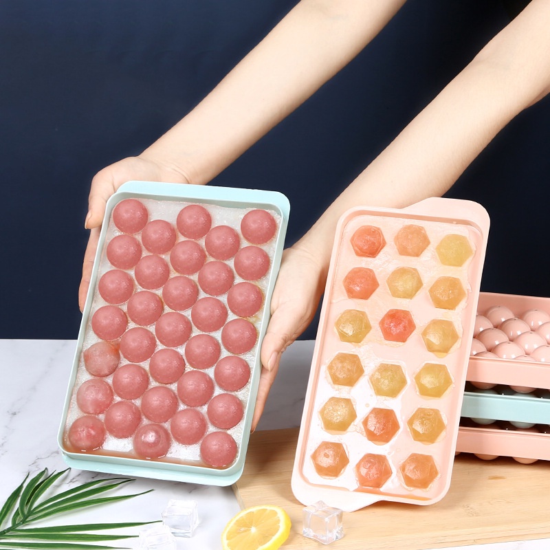 Khay đá tròn, khuôn làm đá có nắp đậy thông minh hình viên tròn, hình kim cương cực đẹp - Gia dụng Homewares