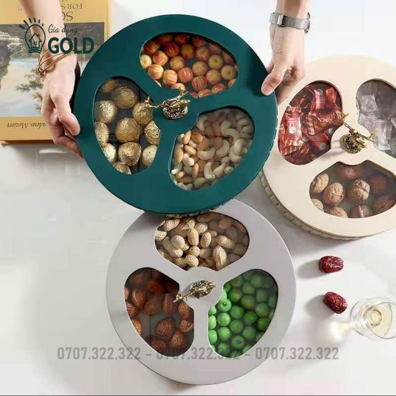 🔐 Công Dụng Sản Phẩm : Khay Mứt Tết Đựng Bánh Kẹo 2 Tầng🔐 🍀Khay Mứt 2 tầng gọn gàng và làm kín hộp, bảo vệ thực phẩm 🍀Có thể giữ điện thoại giúp bạn vừa xem phin vừa cắn hạt, ăn mứt kẹo 🍀Sắp đến tết rồi em sẽ về nhiều các mẫu khay đựng mứt, bánh kẹo nhé cả nhà. 🍀Khay đựng bánh kẹo gồm 2 tầng 3 hũ / tầng 1,và có nắp đậy giúp bạn bảo quản mứt bánh luôn được thơm ngon và vệ sinh. 🍀Khay đựng mứt được làm từ nhựa cao cấp rất an toàn cho người sử dụng, không bị ám mùi nhựa lên đồ ăn và thân thiện với môi trường. 🍀Thể tích lớn có thể sử dụng đựng các loại thực phẩm; đồ ăn…như bánh; mứt; kẹo; hạt dưa… 🍀Thiết kế thông minh phần nắp hộp có 1 đầu hưu nắm, thiết kế hộp mứt theo phong cách châu âu nhìn rất đẹp măt, tạo ấn tượng cho người nhìn. 🍀Khay đựng mứt còn là vật trang trí vô cùng đẹp mắt và trang nhã cho không gian tết nhà bạn. 🍀Đây là món quà độc đáo dành tặng bạn bè , người thân nhân dịp tết xuân về. Cả gia đình có thể quây quần bên nhau trò chuyện, thưởng thức cục mứt, viện kẹo còn gì viên mãn hơn nữa đúng không nào